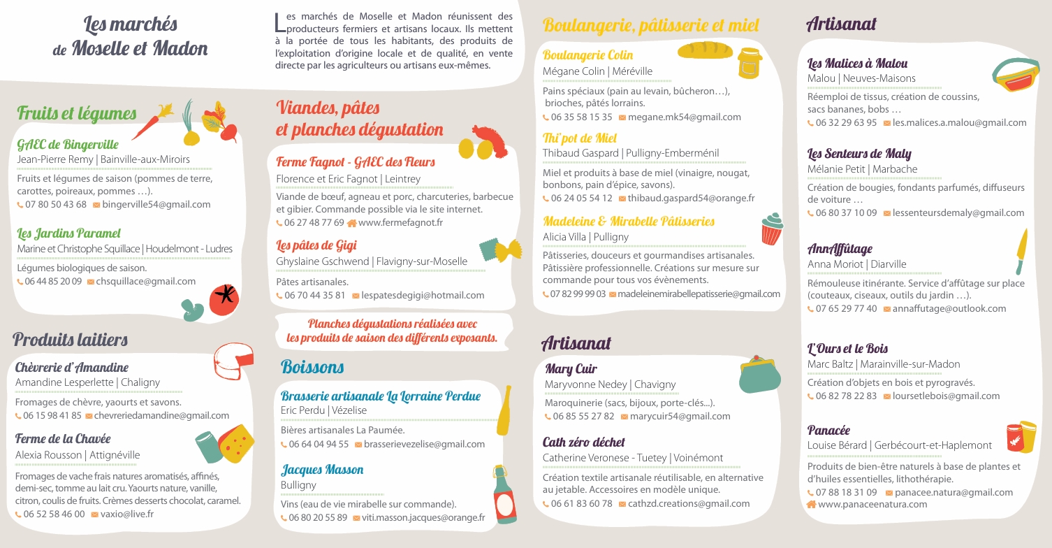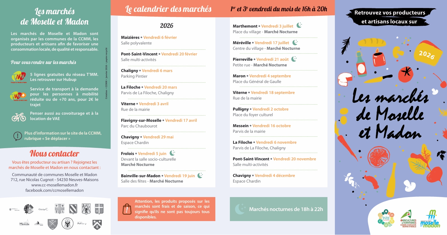 Marchés de Moselle et Madon 2026 Auteur/autrice de la publication :Mairie de Bainville Publication publiée :27 janvier 2026 Post category:Animations / Marché de producteurs Commentaires de la publication :0 commentaire Voilà le dépliant des marchés de la CCMM avec les dates et les producteurs. Pour Bainville la date est susceptible de changer ! Vous devriez également aimer Soirée cinéma en plein air… repoussée au 20 septembre ! 23 août 2024 Soirée musicale et cinéma en plein air (27 août 2022) 1 juillet 2022 Cérémonie du 8 mai 2021 11 mai 2021 Laisser un commentaire Annuler la réponseCommentEnter your name or username to comment Enter your email address to comment Saisir l’URL de votre site (facultatif) Δ