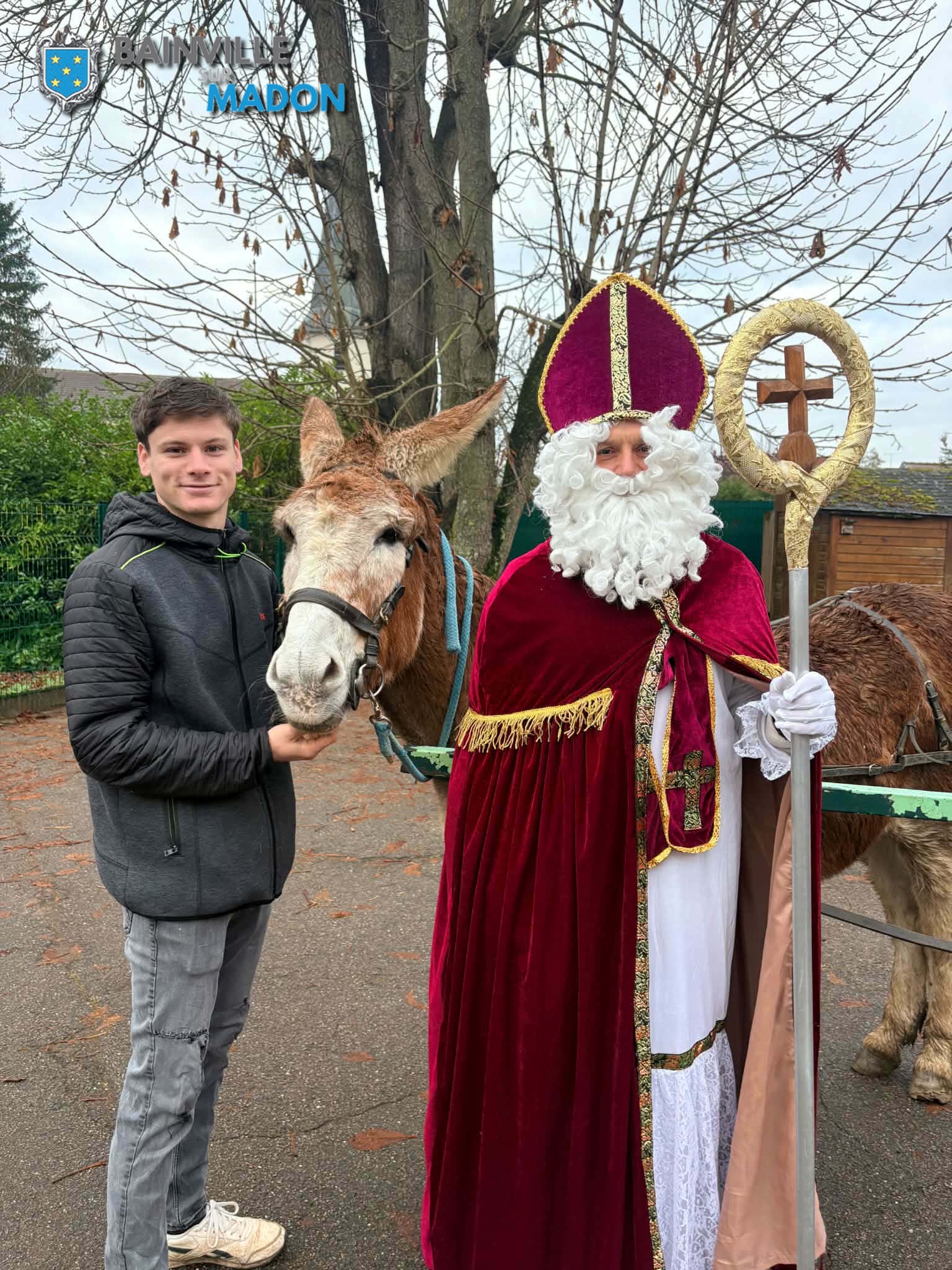 Merci au conseiller municipal, Benoit Dupont, qui a endossé pour l’occasion l’habit de Saint-Nicolas ; et à Gaëtan Dupont, son fils, vous avoir guidé l’âne Caramel, appartenant à l’ancien maire, Jean-Michel Perrin (merci à lui).