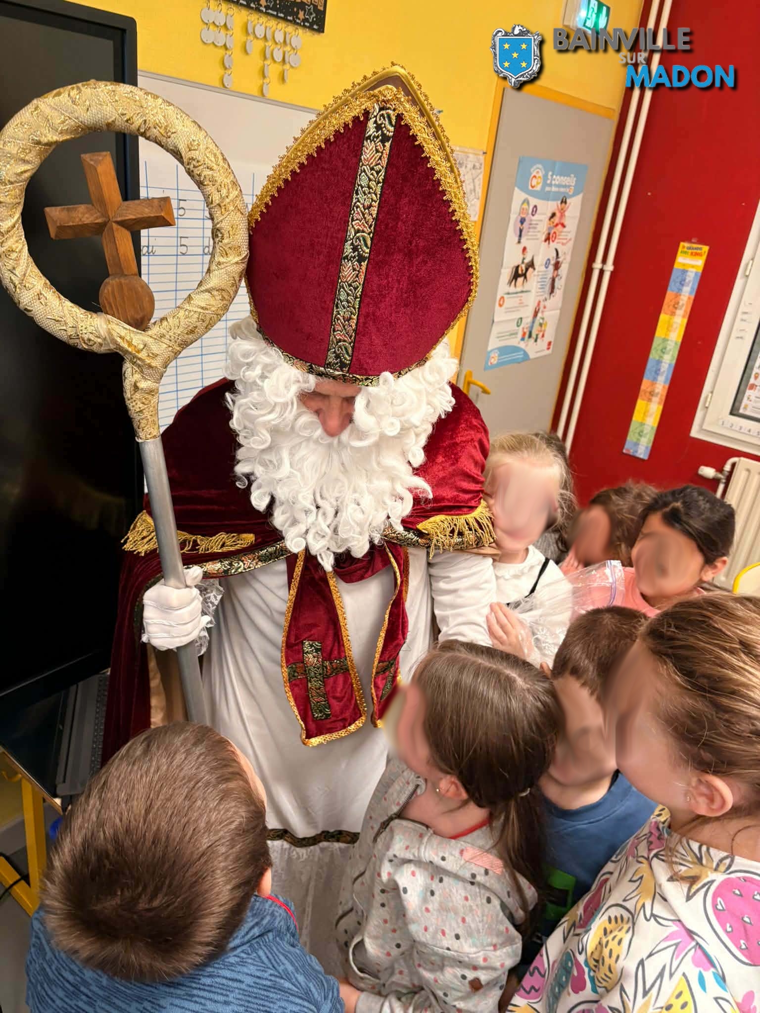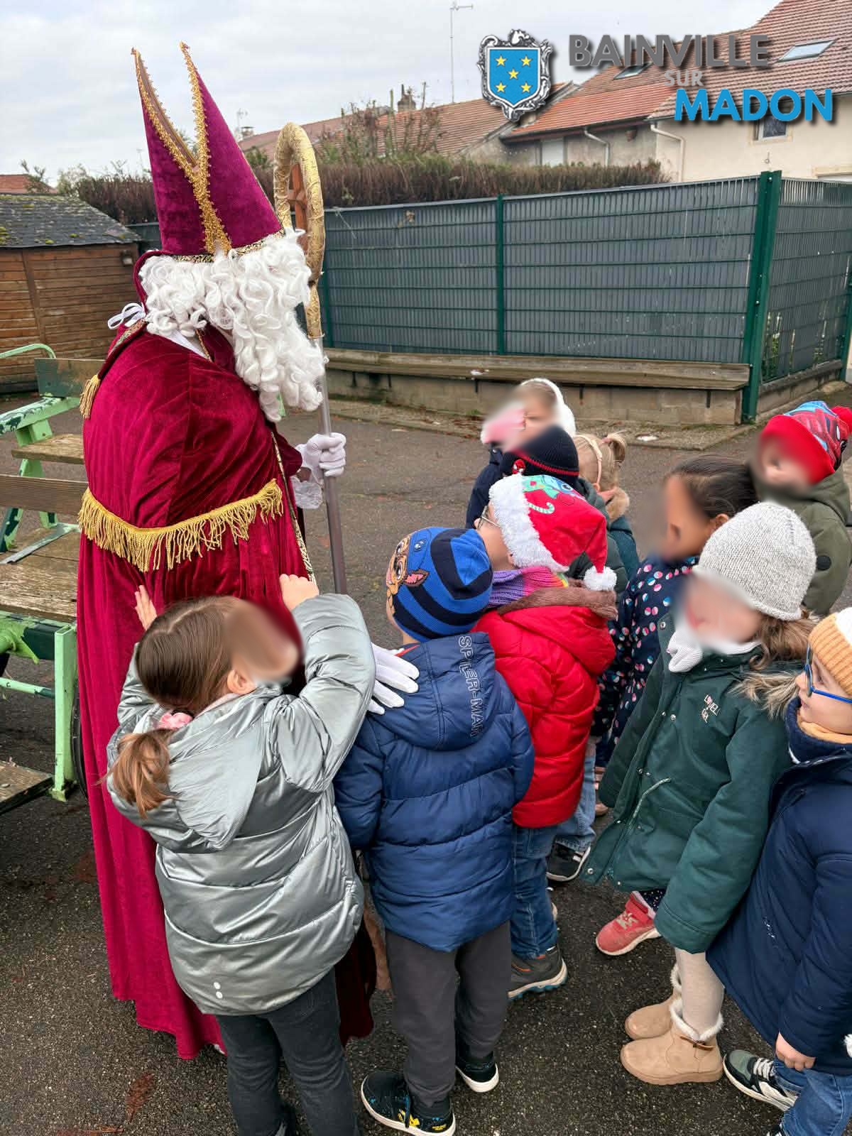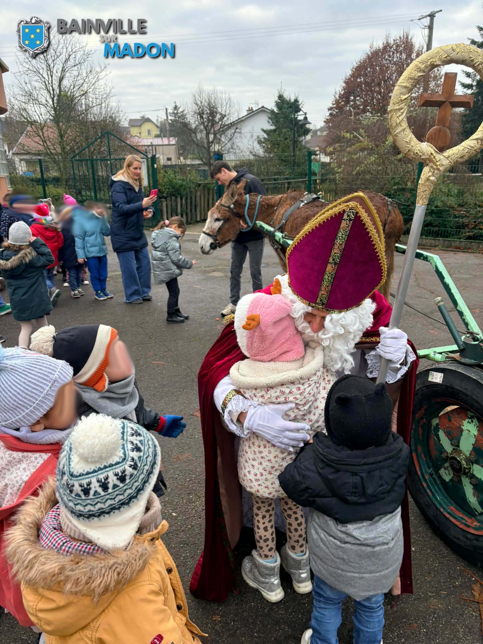 Vendredi 5 décembre 2025, le bon Saint-Nicolas est passé avec son âne à l’Ecole Jacques Callot de Bainville-sur-Madon, pour rencontrer les enfants « sages » qui ont reçu des bonhommes brioches et des « Saint-Nicolas » en chocolat.