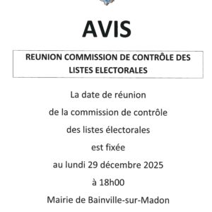 - Avis de la réunion commission de contrôle des listes électorales – 29 décembre 2025